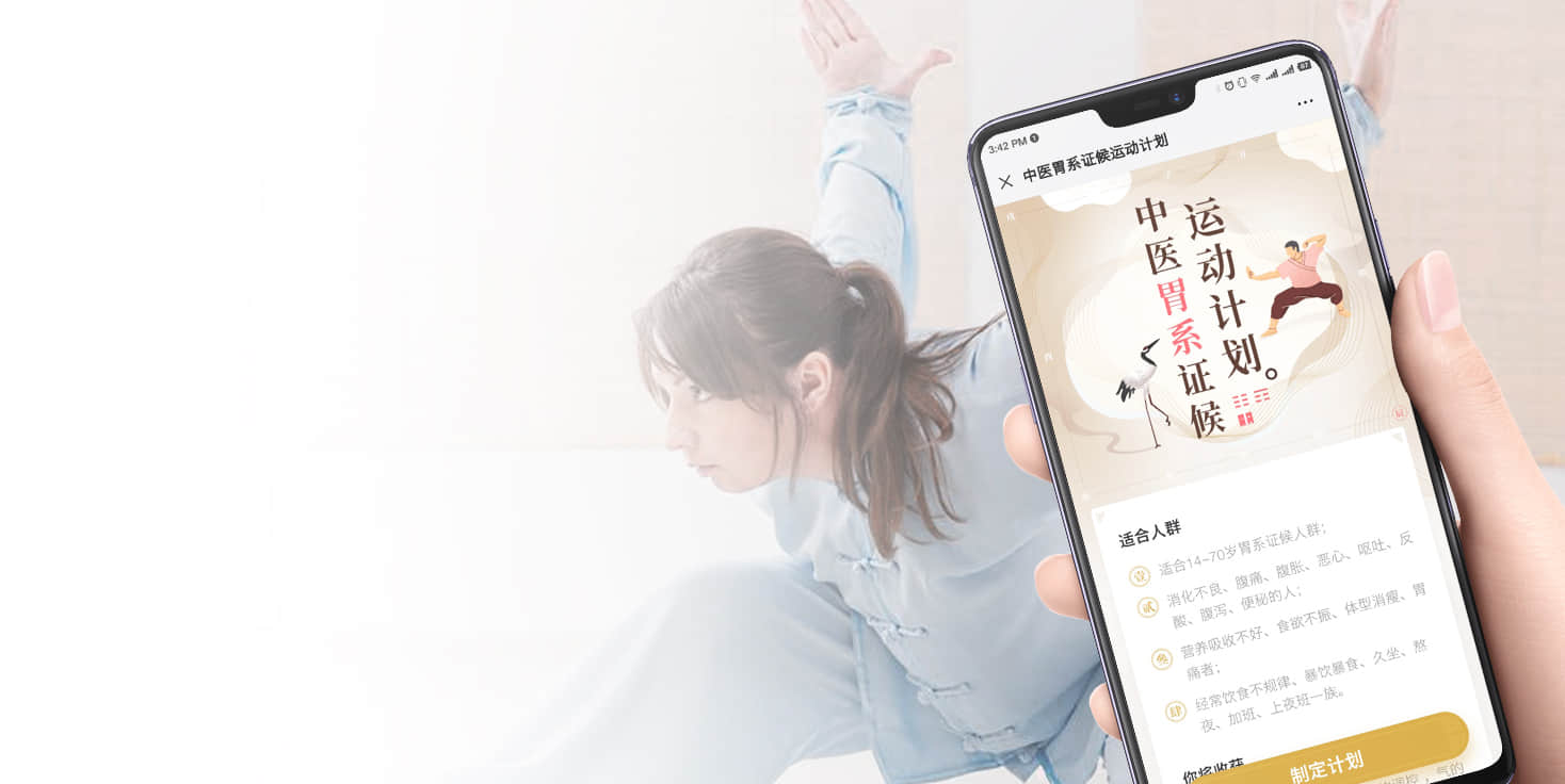 通过中医胃系运动计划服务,针对胃现阶段的状态特征,可快速提供用户每日的运动方案,常用于健身场所、医疗康复机构等使用场景。
