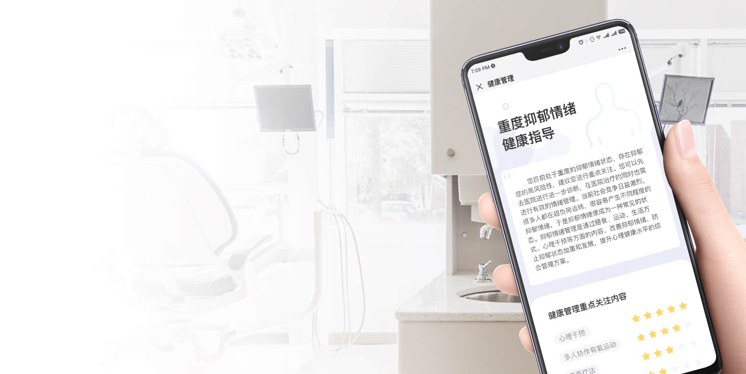 针对抑郁情绪测评结果,为不同抑郁程度的成年人提供个性化的心理、运动、生活方式、膳食营养等健康指导方案,帮助受抑郁情绪困扰的人消除抑郁情绪。